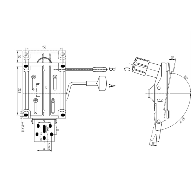 • 倾仰角度3级锁定0 ~ 17°。
